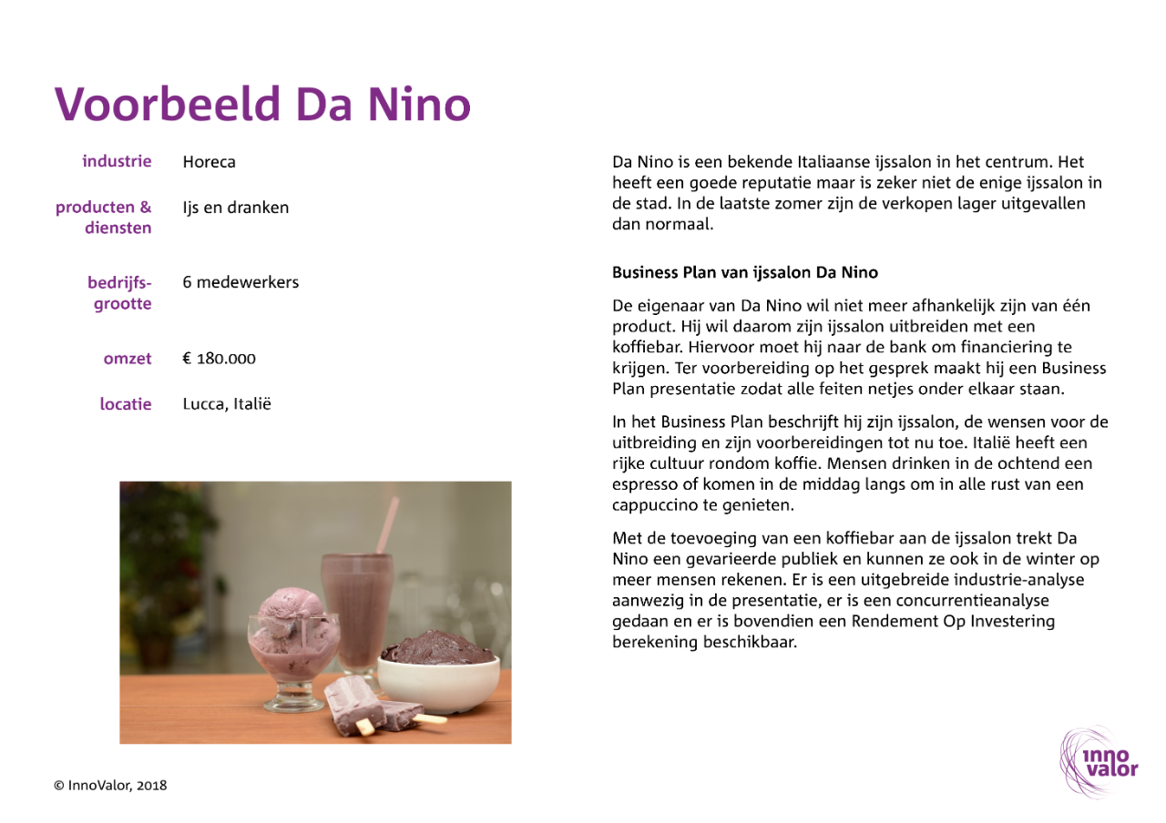 Het Business Plan is een PowerPoint. Je kunt de ingevulde slides direct meenemen naar een presentatie bij een bank of investeerder.