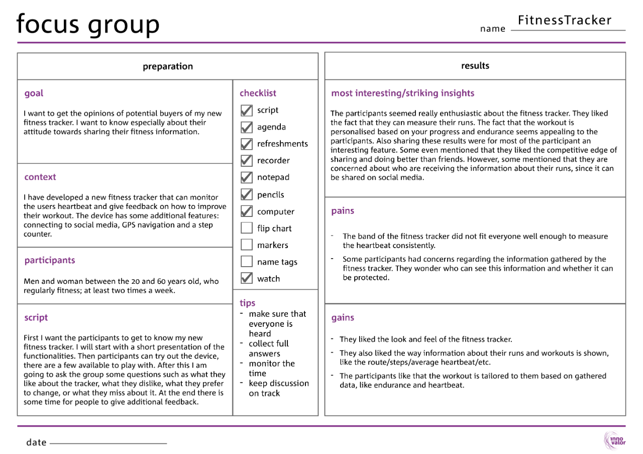 Het Focusgroep formulier helpt je om jezelf voor te bereiden op een succesvolle Focusgroep sessie.